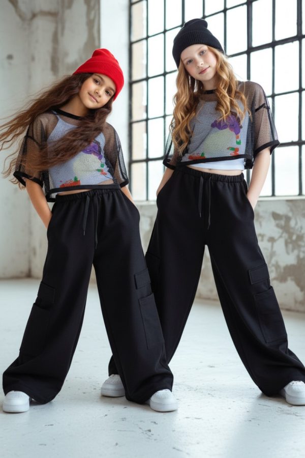 Komplet 3częściowy dziewczęcy Projektantka top+bluzka siatka+spodnie