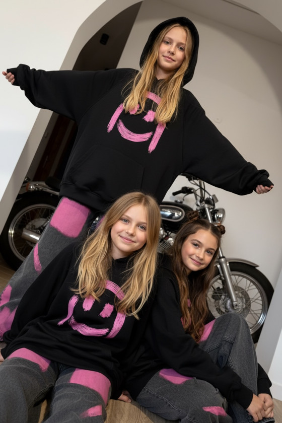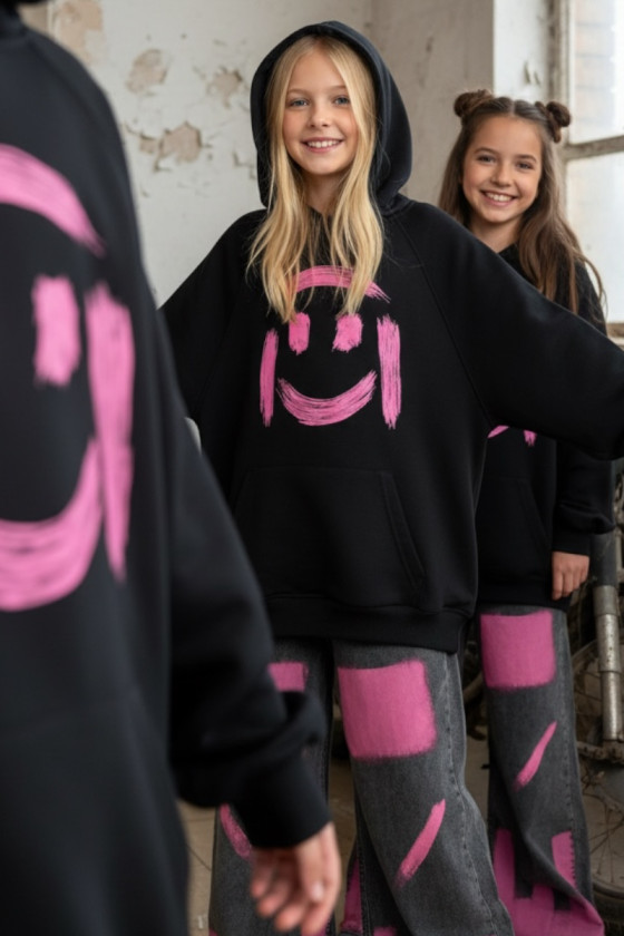 Bluza w kolorze czarnym z uśmiechem, który widać z daleka! Energetyczny nadruk w stylu street-art i wyróżniający się kolorowy nadruk tworzą duet, który wyróżnia każdą stylizację. Miękka, przyjemna w dotyku bawełna i swobodny krój sprawiają, że to ulubiona bluza na szkołę, wyjścia z przyjaciółmi i weekendowe przygody.