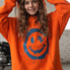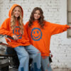 Bluza w kolorze orange z uśmiechem, który widać z daleka! Energetyczny nadruk w stylu street-art i soczysty odcień pomarańczy tworzą duet, który wyróżnia każdą stylizację. Miękka, przyjemna w dotyku bawełna i swobodny krój sprawiają, że to ulubiona bluza na szkołę, wyjścia z przyjaciółmi i weekendowe przygody.