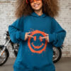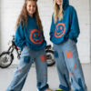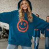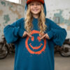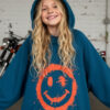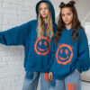Bluza w kolorze petrol z uśmiechem, który widać z daleka! Petrol to kolor pośredni między niebieskim a zielonym, ciemny lekko przydymiony odcień turkusu wygląda elegancko i nowocześnie, przypomina morską wodę w cieniu. Energetyczny nadruk w stylu street-art i wyróżniający się kolor petrol tworzą duet, który wyróżnia każdą stylizację. Miękka, przyjemna w dotyku bawełna i swobodny krój sprawiają, że to ulubiona bluza na szkołę, wyjścia z przyjaciółmi i weekendowe przygody.