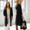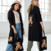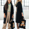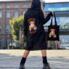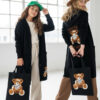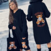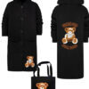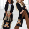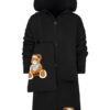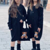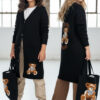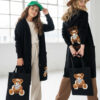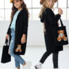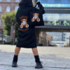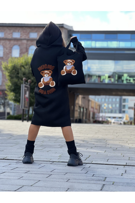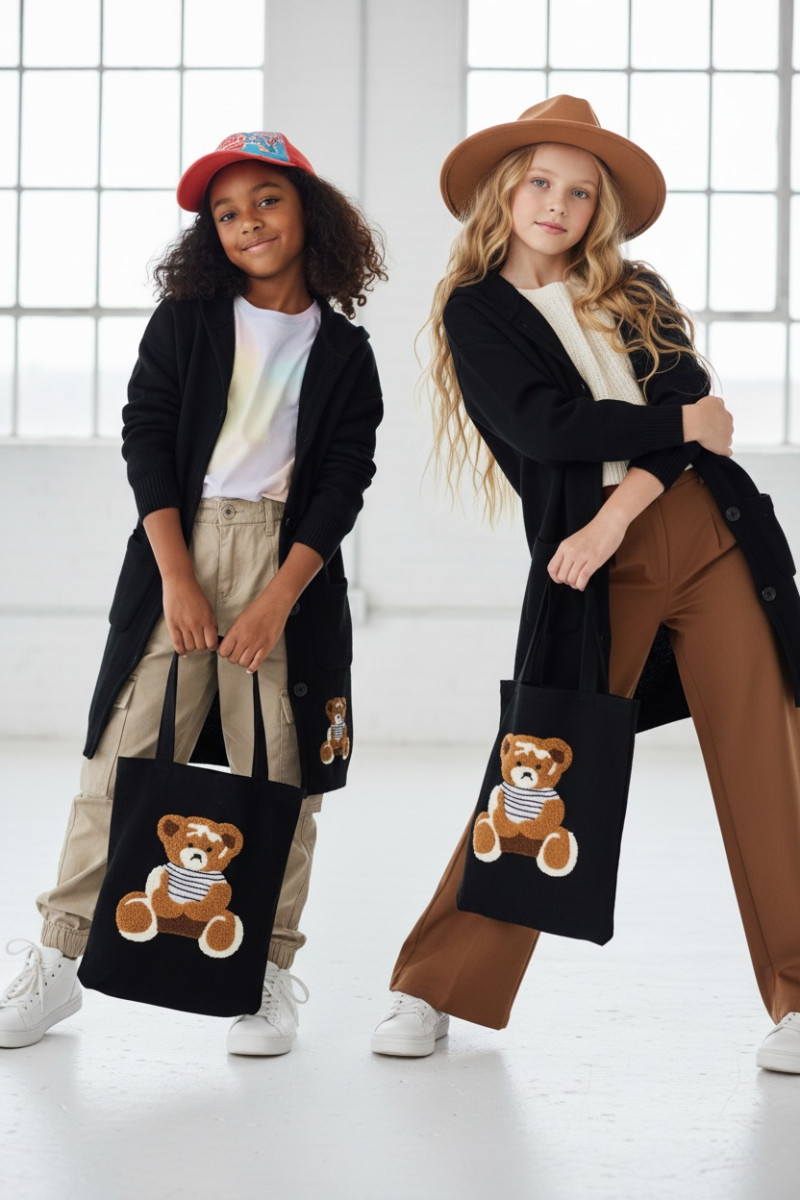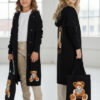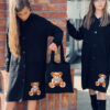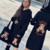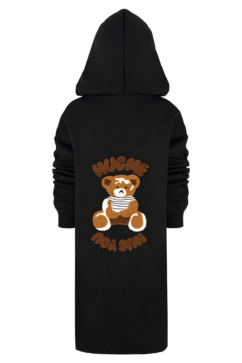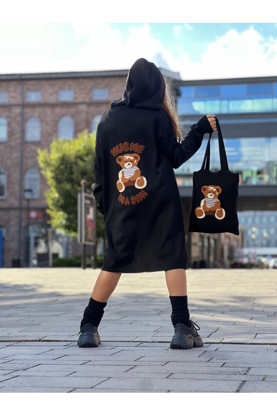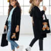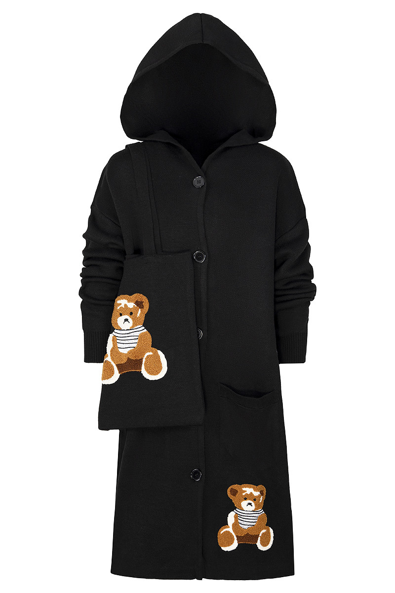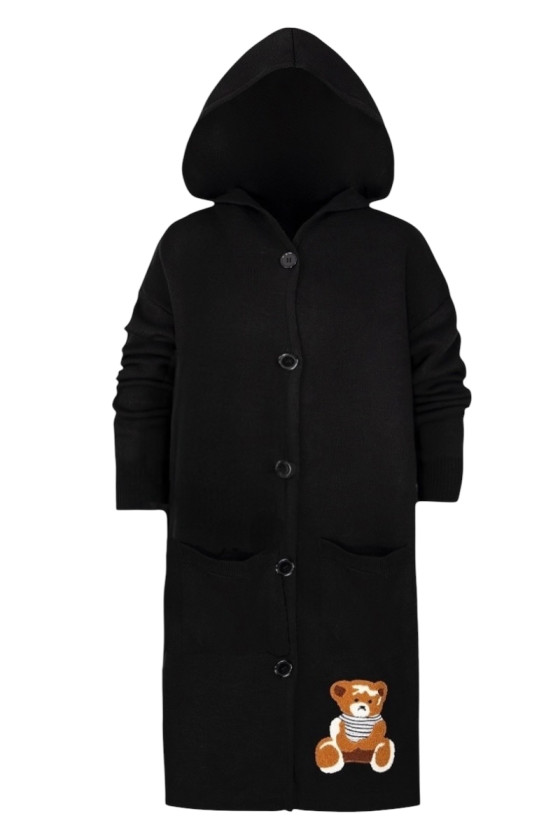 Stylowy i ciepły kardigan dla dziewczynki idealny na chłodniejsze dni, zapewnia wygodę i swobodę ruchu. Kardigan z lużnym kapturem, zapinany na guziki, finkcionalne kieszenie. Kardigan wyróżnia się urokliwym haftowanym wizerunkiem misia, z przodu mały miś, na plecach miś z napisem Hug Me, co dodaje mu uroku i oryginalności. Wykonany z wysokiej jakości materiałów gwarantuje trwałość i komfort użytkowania, doskonały wybór na codzienne wyjścia do szkoły lub na rodzinne spacery. Połączenie dziewczęcego stylu i praktyczności, sprawia, że kardigan stanie się ulubionym elementem garderoby twojego dziecka. Kardigan może pełnić funkcję sukienki co czyni go wszechstronnym elementem garderoby, pasuje do wielu różnych stylizacj,i zarówno casualowych jak i bardziej eleganckich. W komplecie idealnie pasująca torebkę shoperkę z takim samym haftowanym misiem.