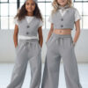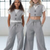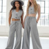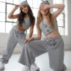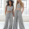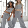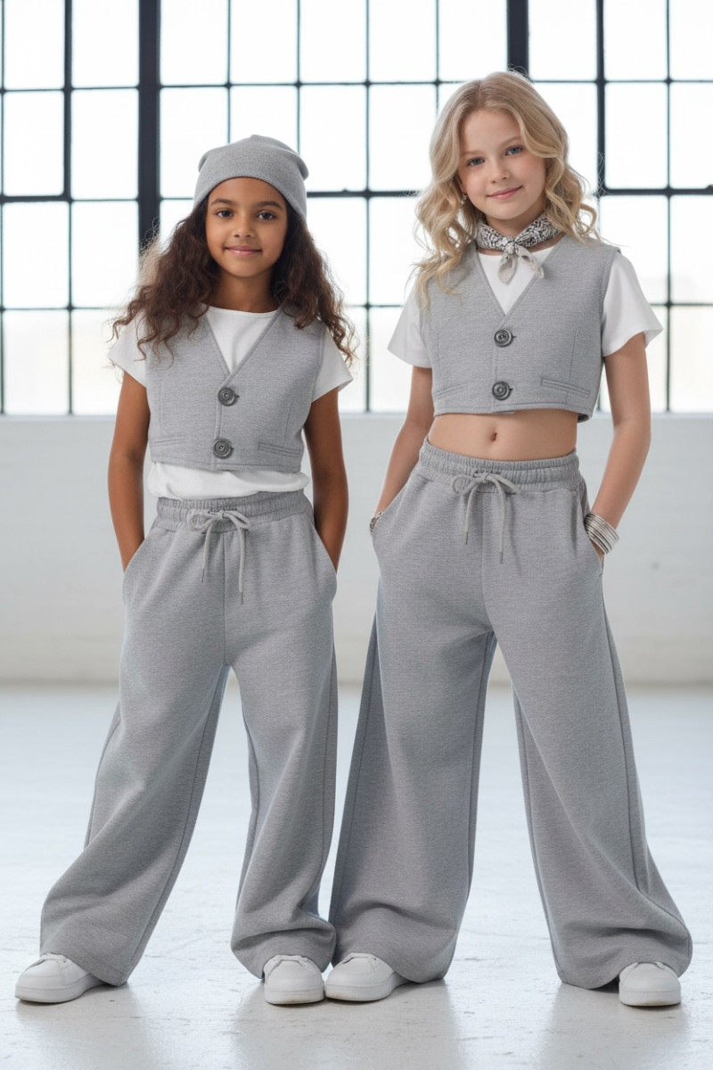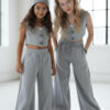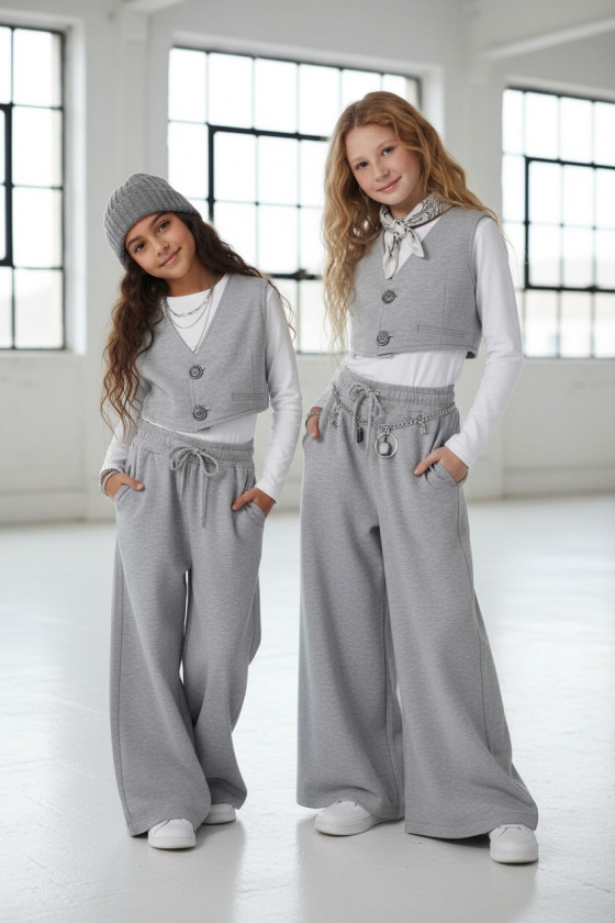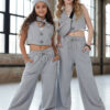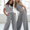 Komplet 3-częściowy Olena kamizeka, biały pasek top, spodnie