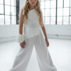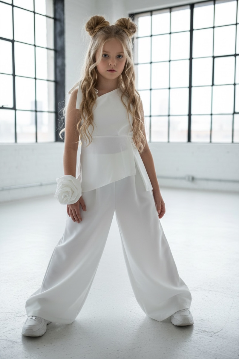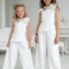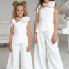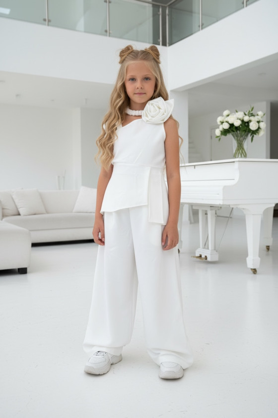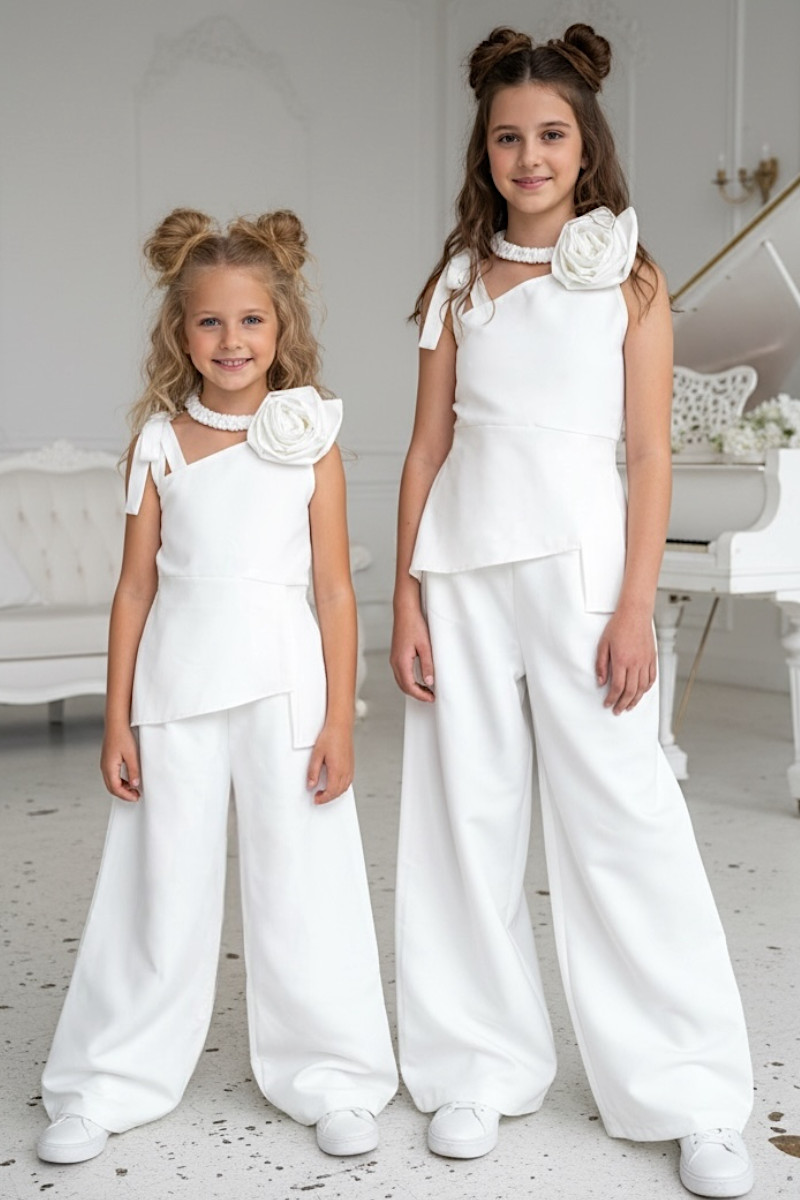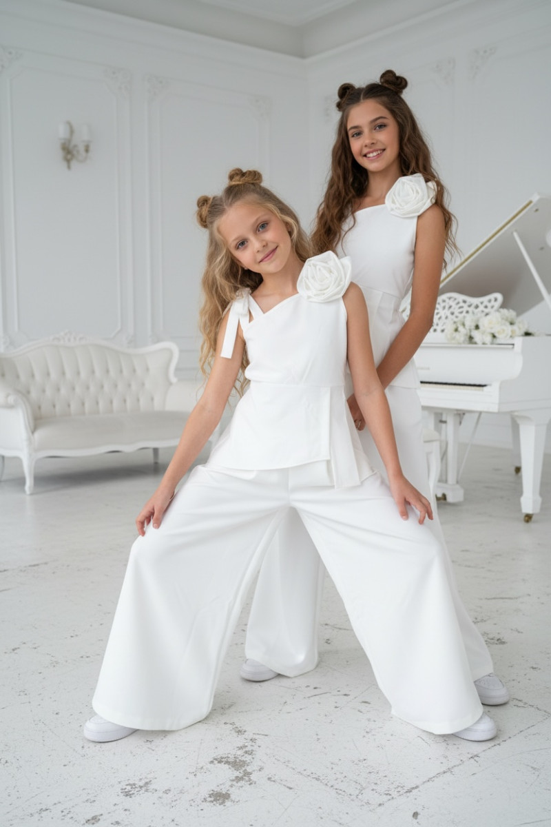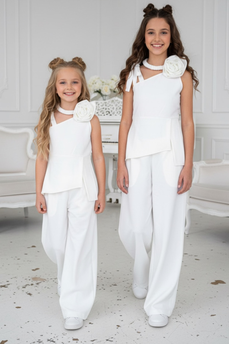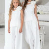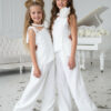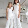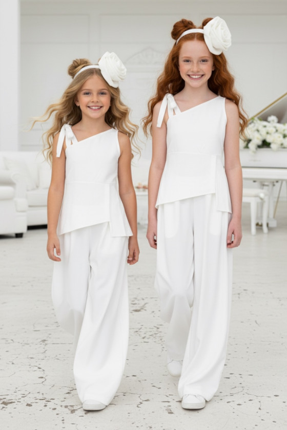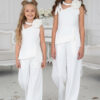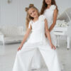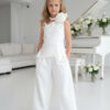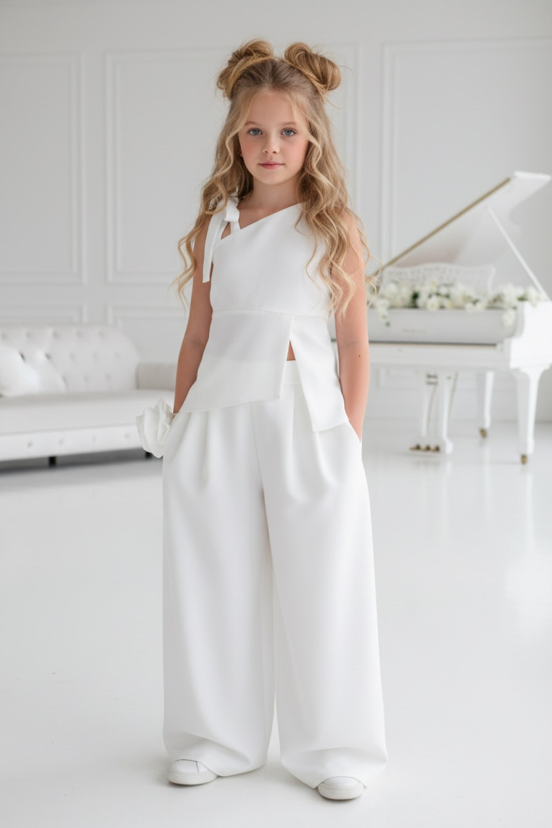 Wyjątkowy zestaw w kolorze śmietanki stworzony na wielkie okazje i wygodę przez cały dzień. Starannie odszyty z gładko układającej się tkaniny, z dbałością o detale i komfort dziecka.