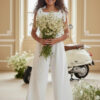 Ten komplet łączy elegancję z wygodą — doskonały wybór na wyjątkowe dni.