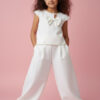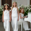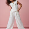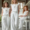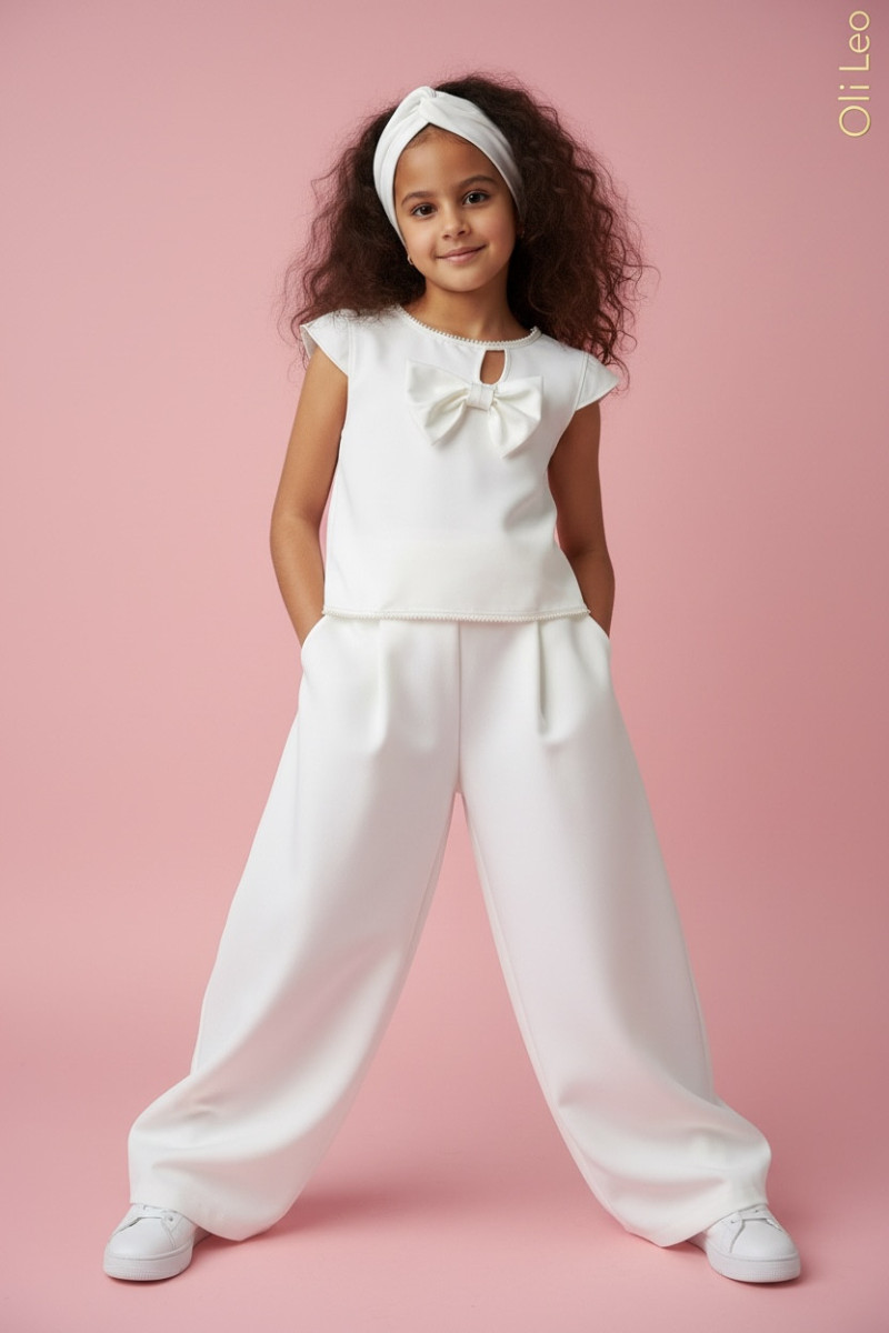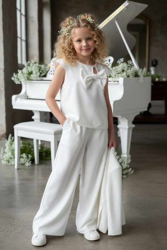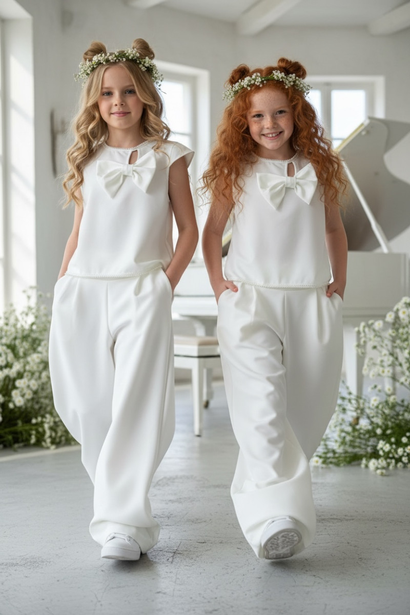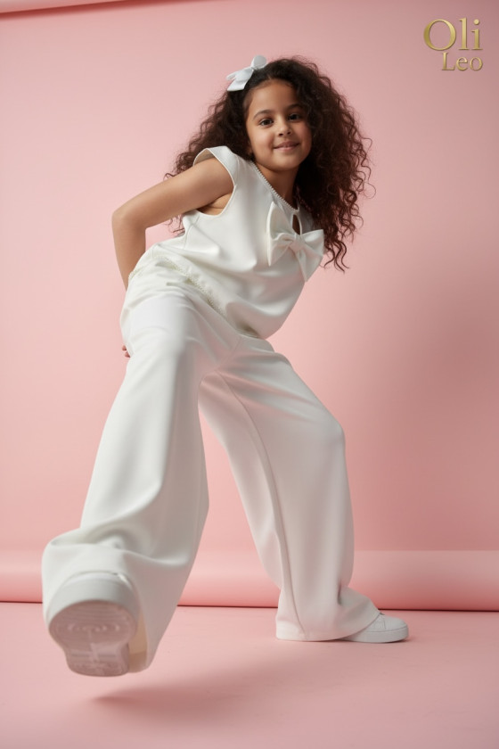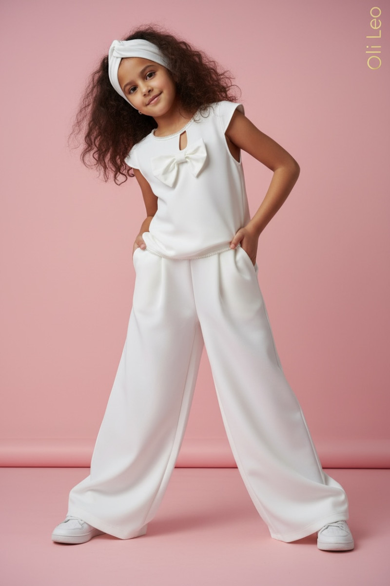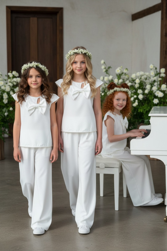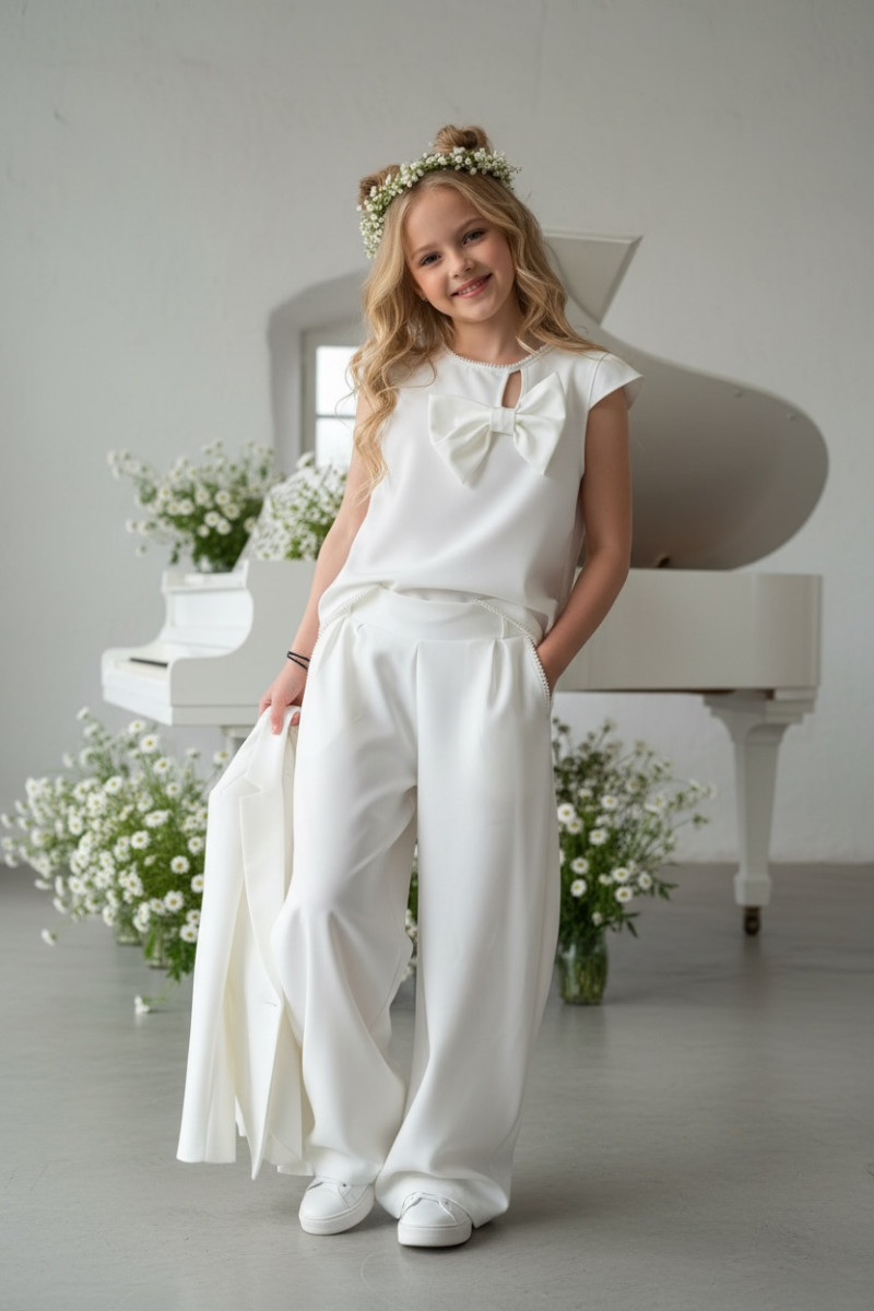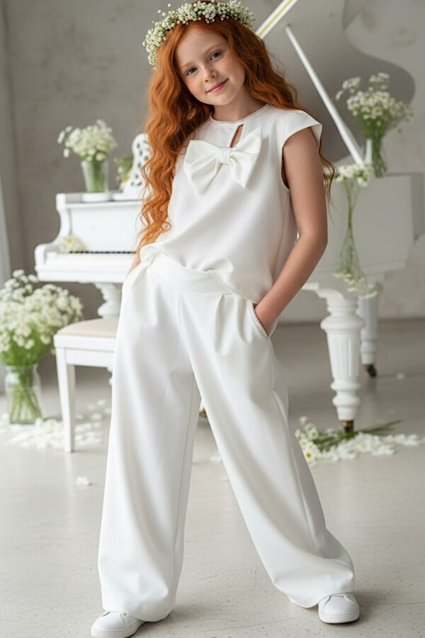 Śliczny komplet dziewczęcy z perełkami – bluzka i spodnie