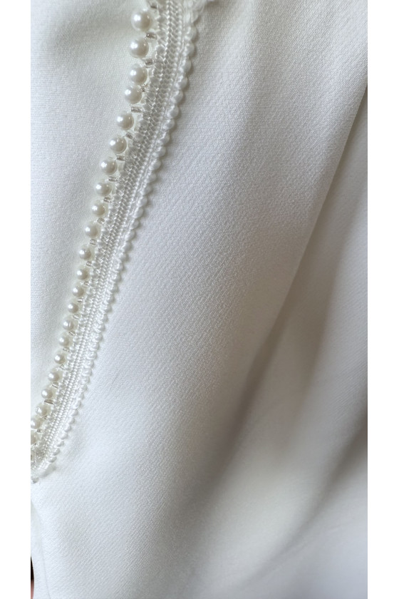 • Dół bluzki wykończony perełkami, co dodaje lekkości i elegancji.
