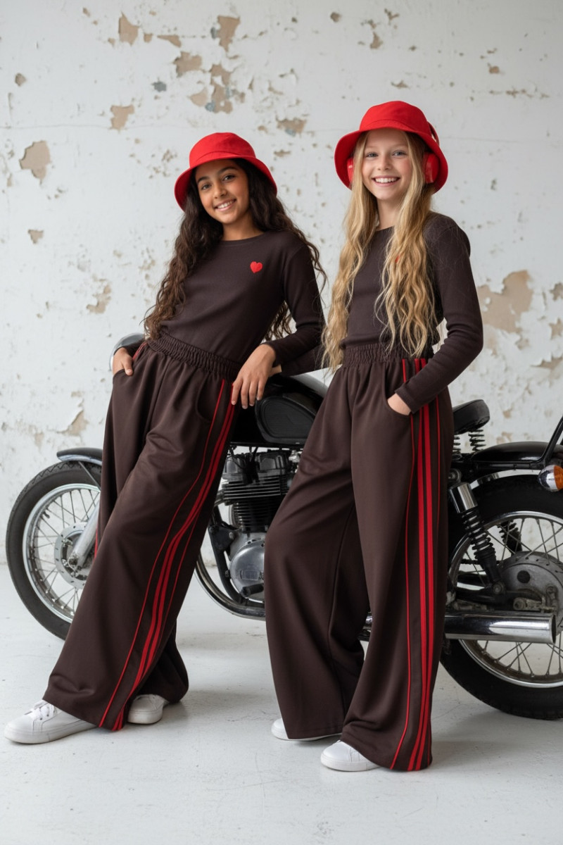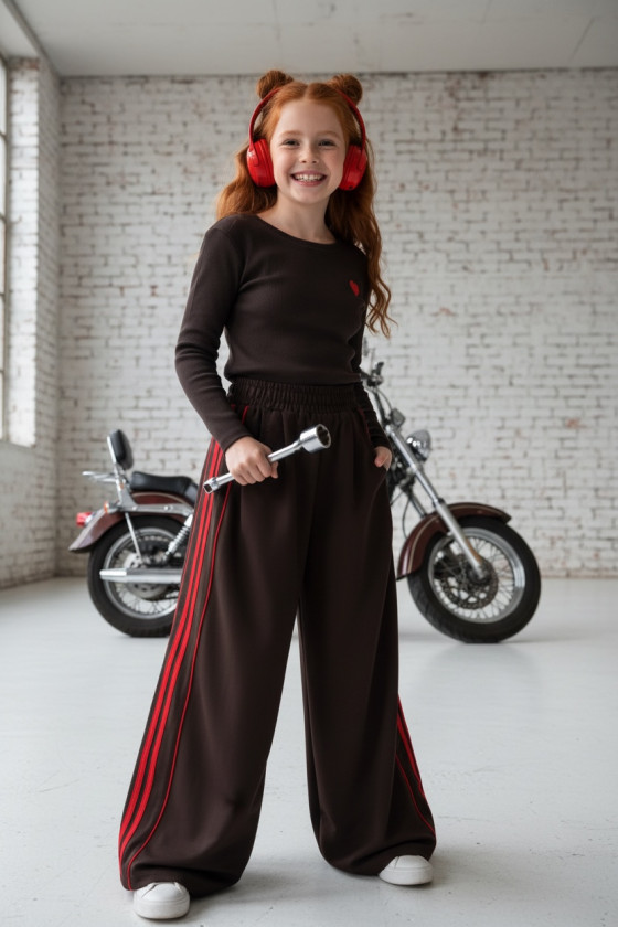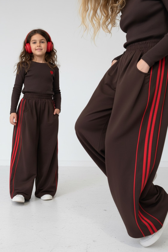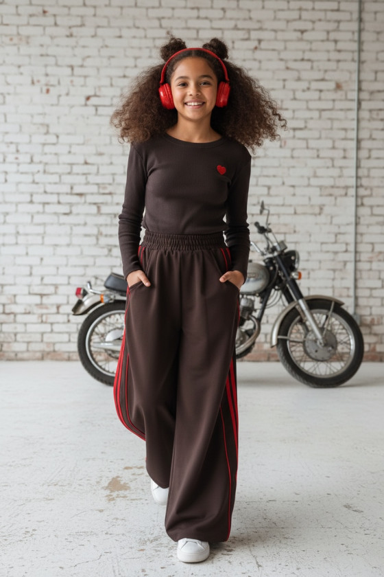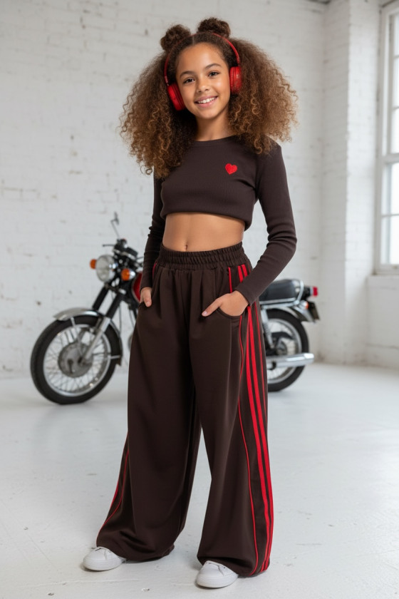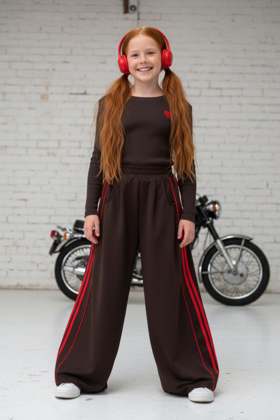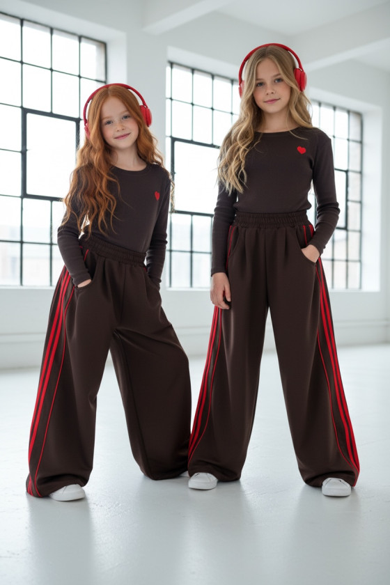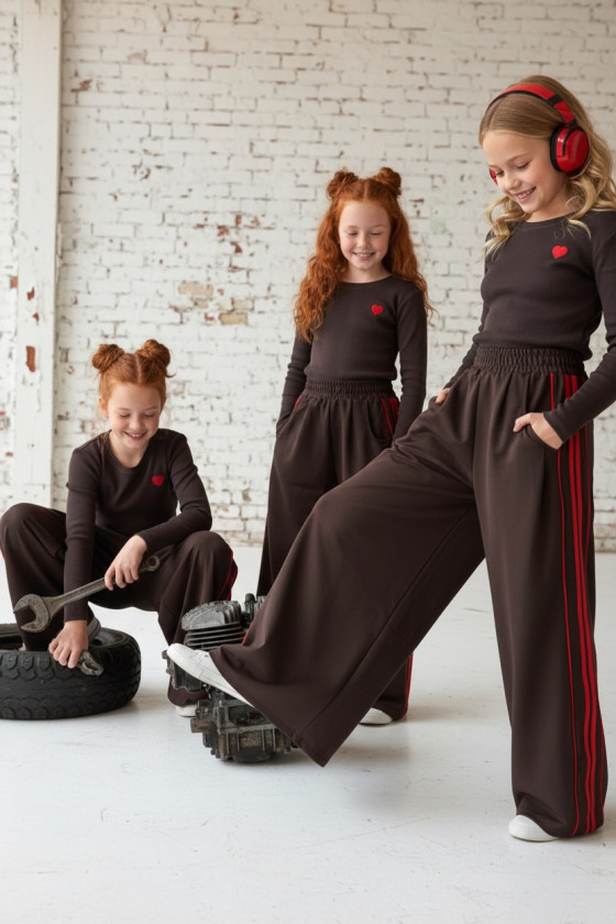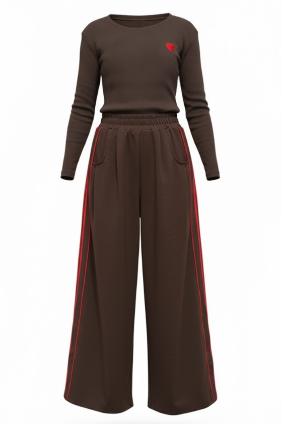 Komplet bluzka prążek i spodnie Brown Heart