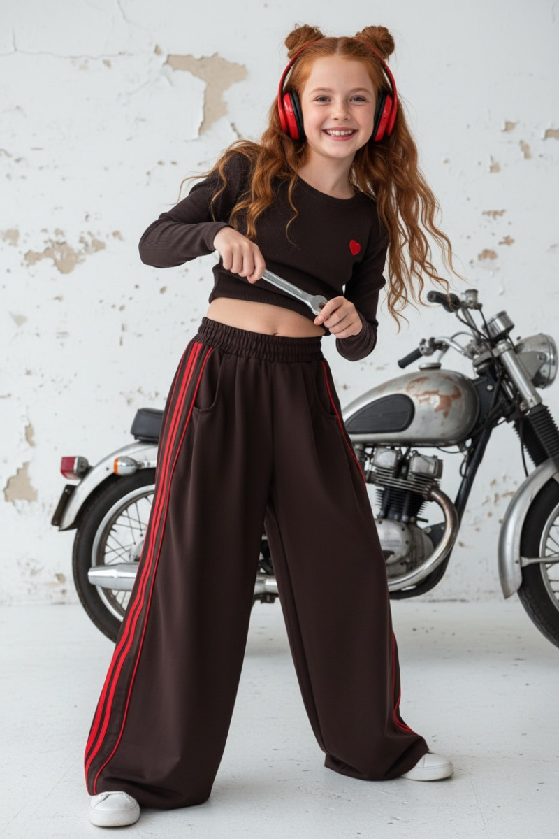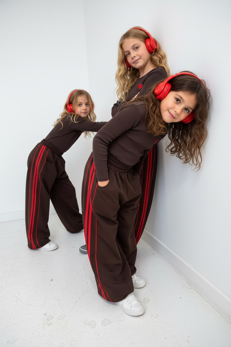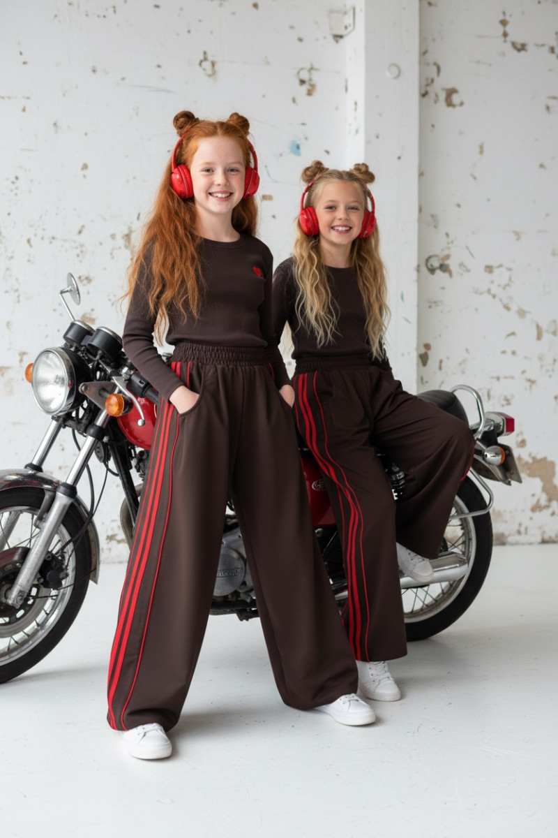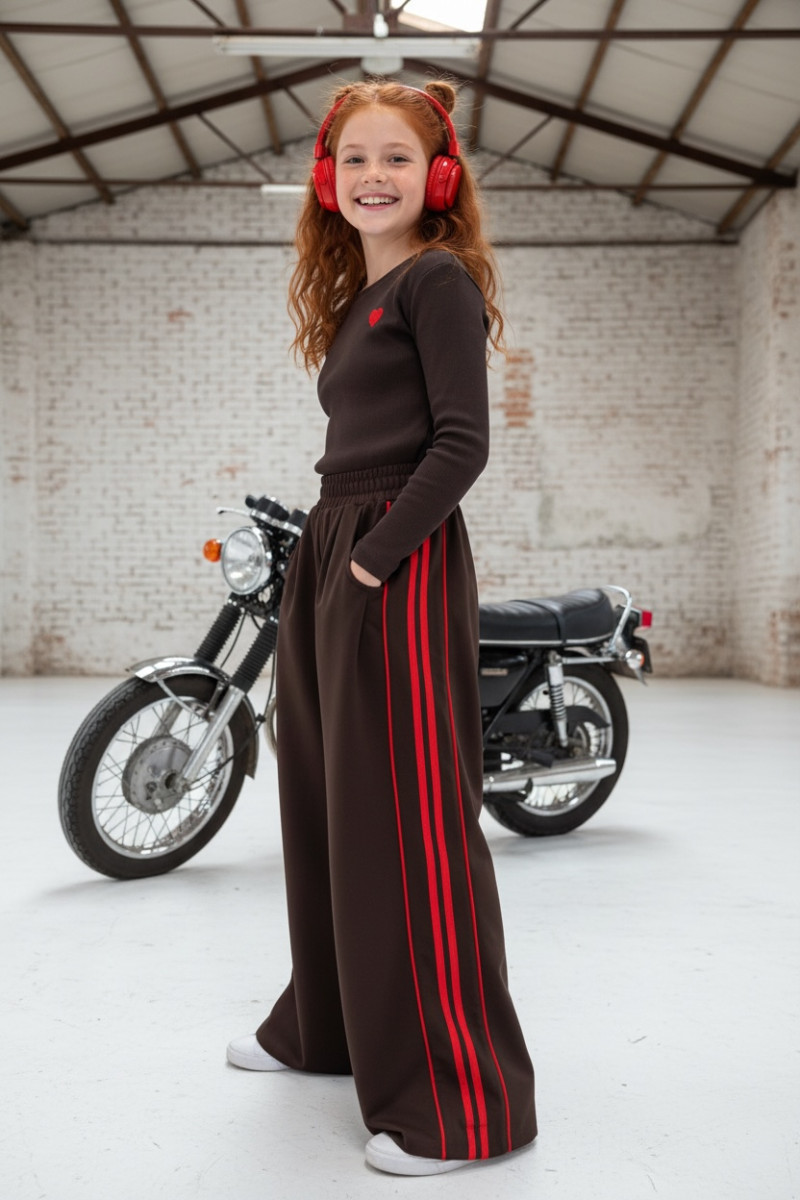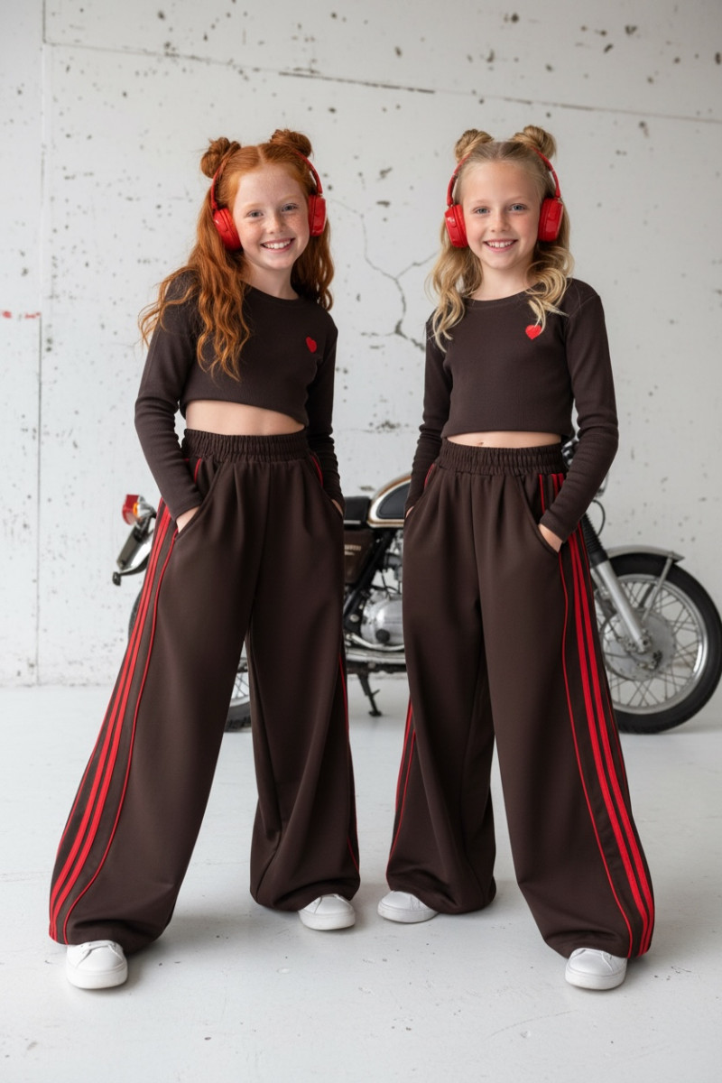 Komplet bluzka prążek i spodnie Brown Heart
