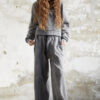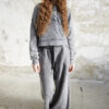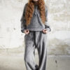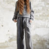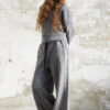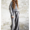• Krój: lużne spodnie o szerokich nogawkach, z elastycznym pasem i dodatkowym wiązaniem co ułatwia dopasowanie do figury.