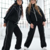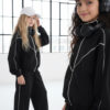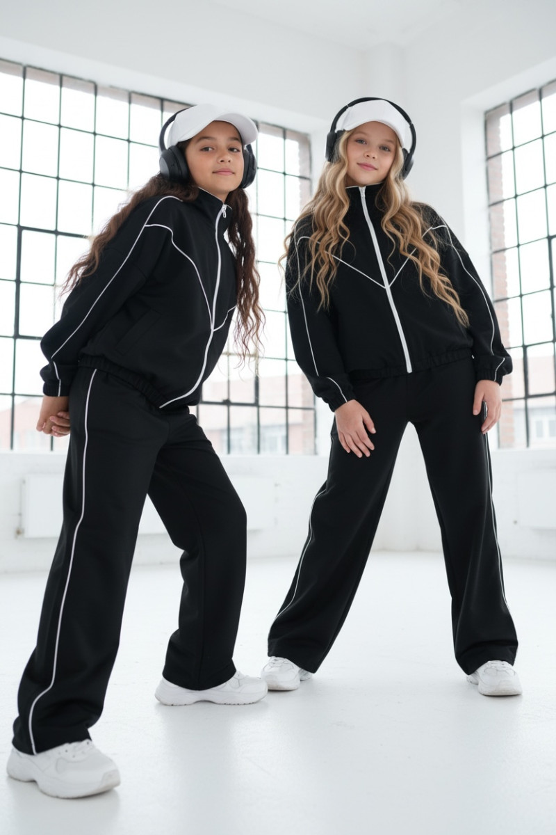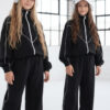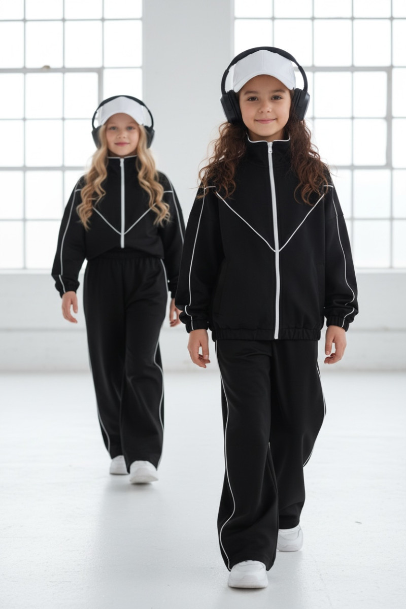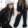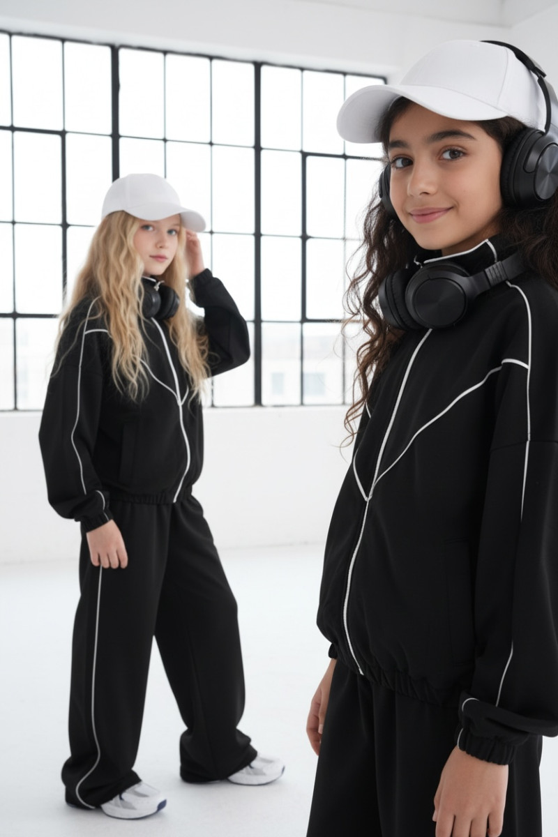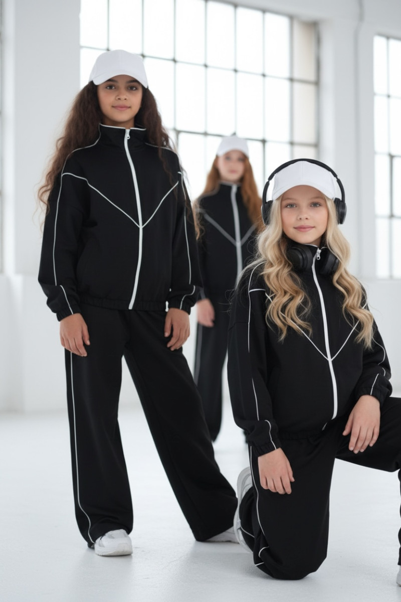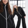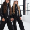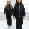 Komplet dresowy premium dla dziewczynki – czarny z kontrastową lamówką, blu.za rozpinana i spodnie.