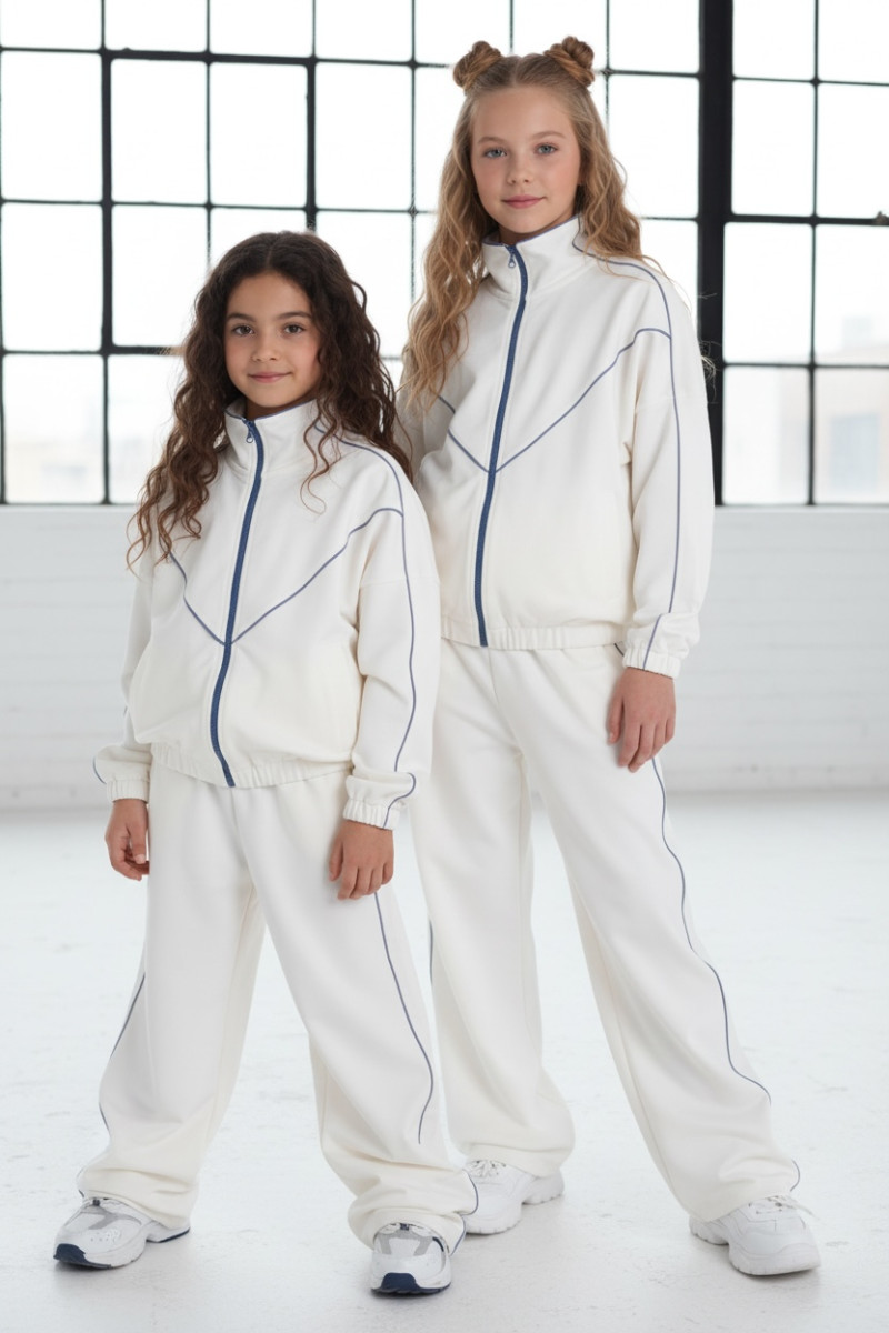 Komplet dla dziewczynki bluza rozpinana i spodnie Relax Airport Ecru