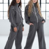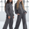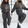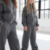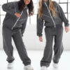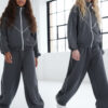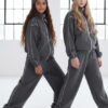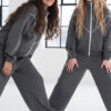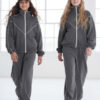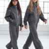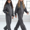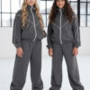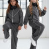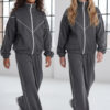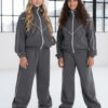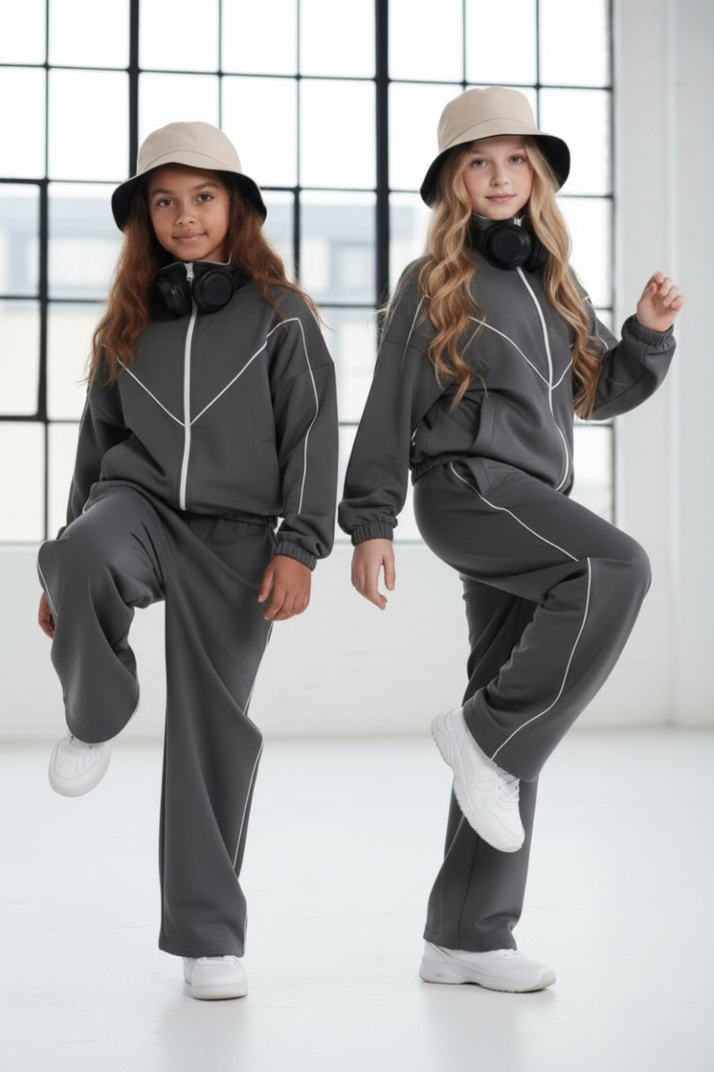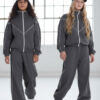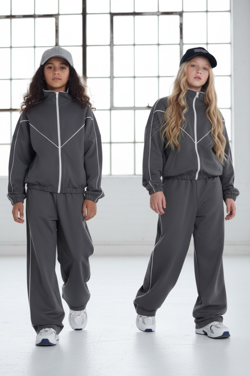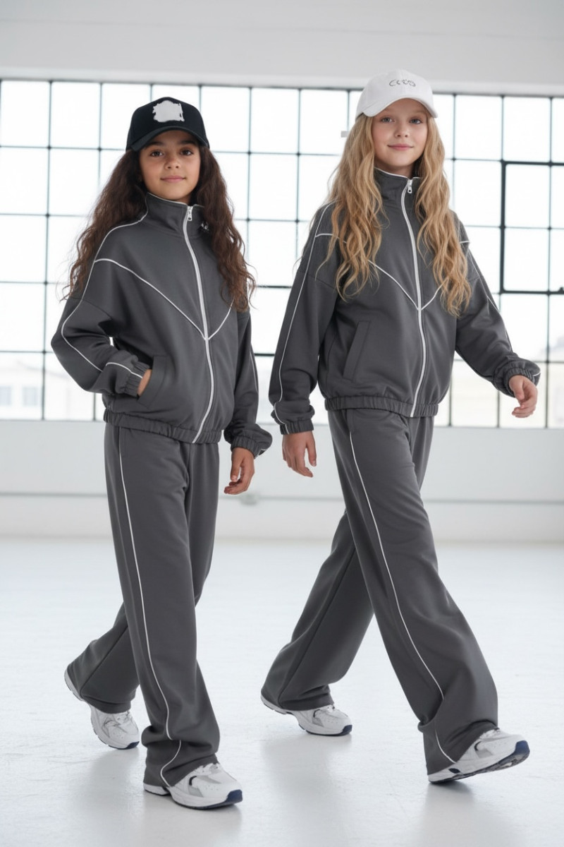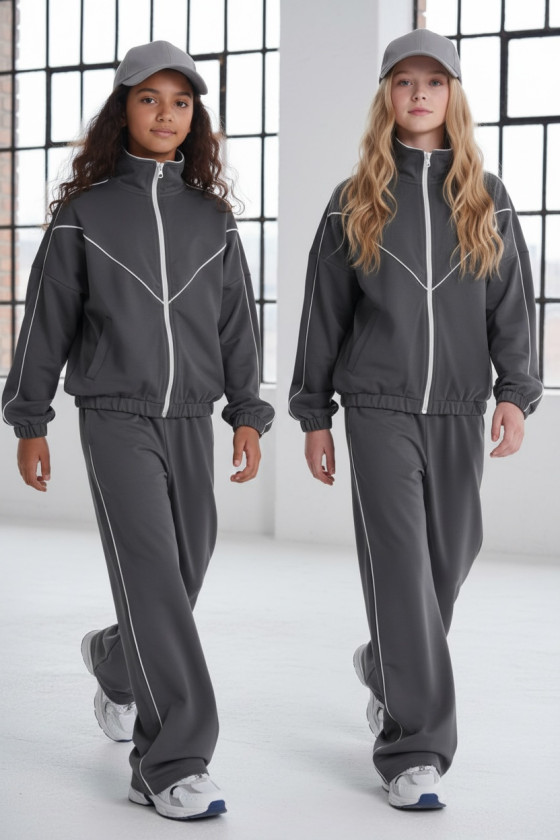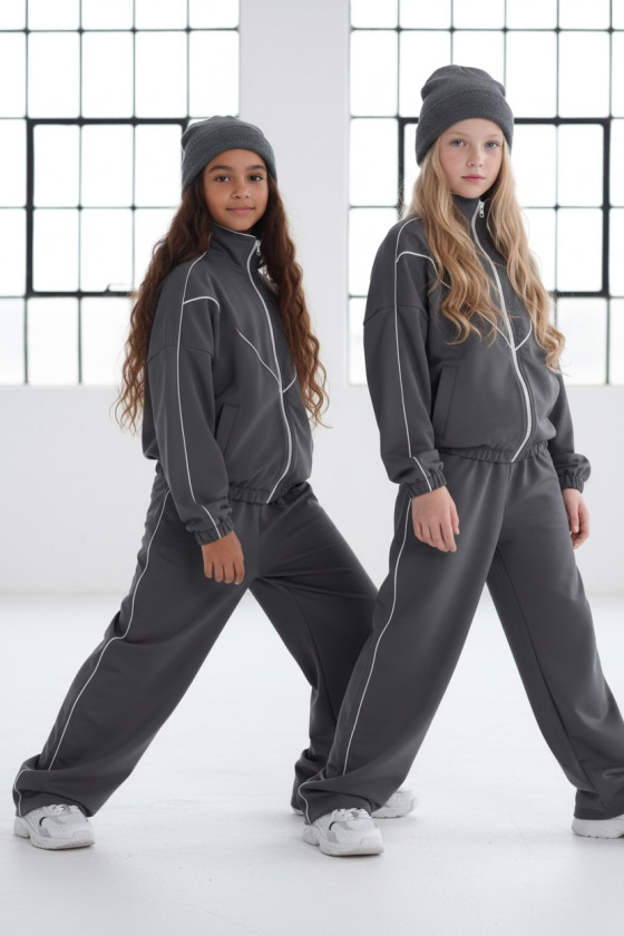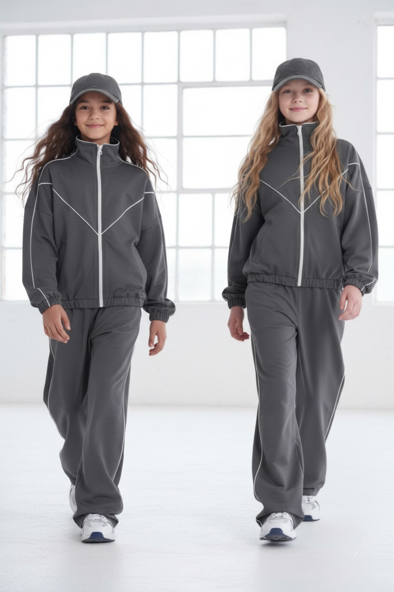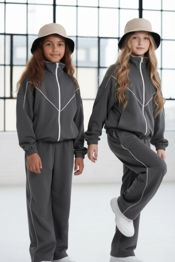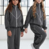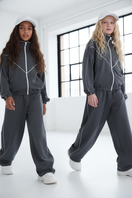 Komplet dresowy premium dla dziewczynki – grafit z kontrastową lamówką, blu.za rozpinana i spodnie.