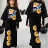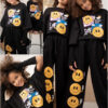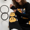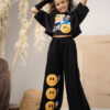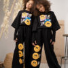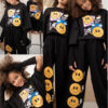 Bluzka bawełniana o szerszym kroju oversize, ozdobną modną grafiką emotek. Ta wyjątkowa grafika dodaje bluzce unikalnego charakteru. Bluza ma obszerne luźne rękawy, które dodają jej stylowego wyglądu i zapewniają swobodę ruchu.