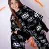 UWAGA! Komplet szyty w stylu oversize, nogawki spodni w modnej długości równo z podeszwą buta jeśli chcesz żeby spodnie były długości standardowej w kostkę możesz śmiało wybrać komplet w  rozmiarze mniejszym.