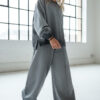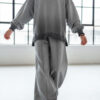 • Krój: lużne spodnie o szerokich nogawkach, z elastycznym pasem, co ułatwia dopasowanie do figury.