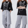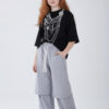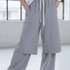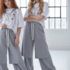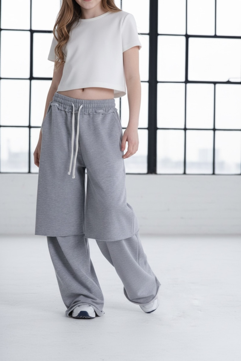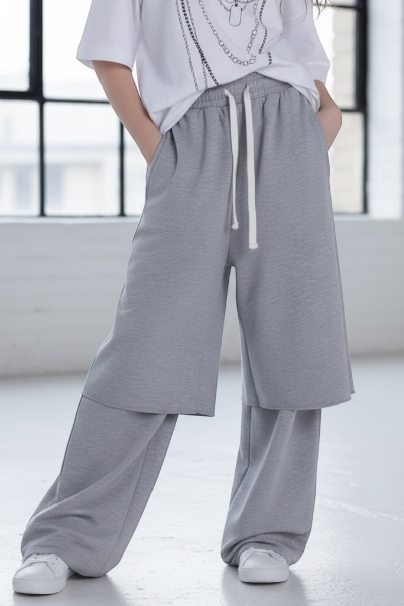 • szare spodnie dresowe wide-leg z warstwowym panelem