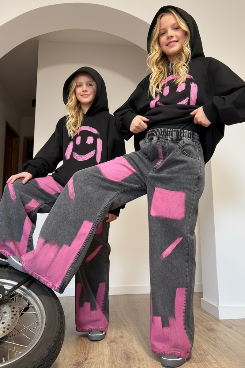Szukasz spodni, które robią wrażenie i nadają stylowi dziewczynki prawdziwy charakter? Te jeansy to strzał w dziesiątkę! Ręcznie malowane akcenty nadają unikalny, artystyczny wygląd — wyjątkowy niepowtarzalny model. Wyjątkowy i oryginalny fason, ktorego  nie spotkasz na ulicy! Super jakość wykonania, wygoda na co dzień i wyjątkowy artystyczny look