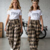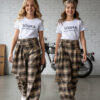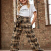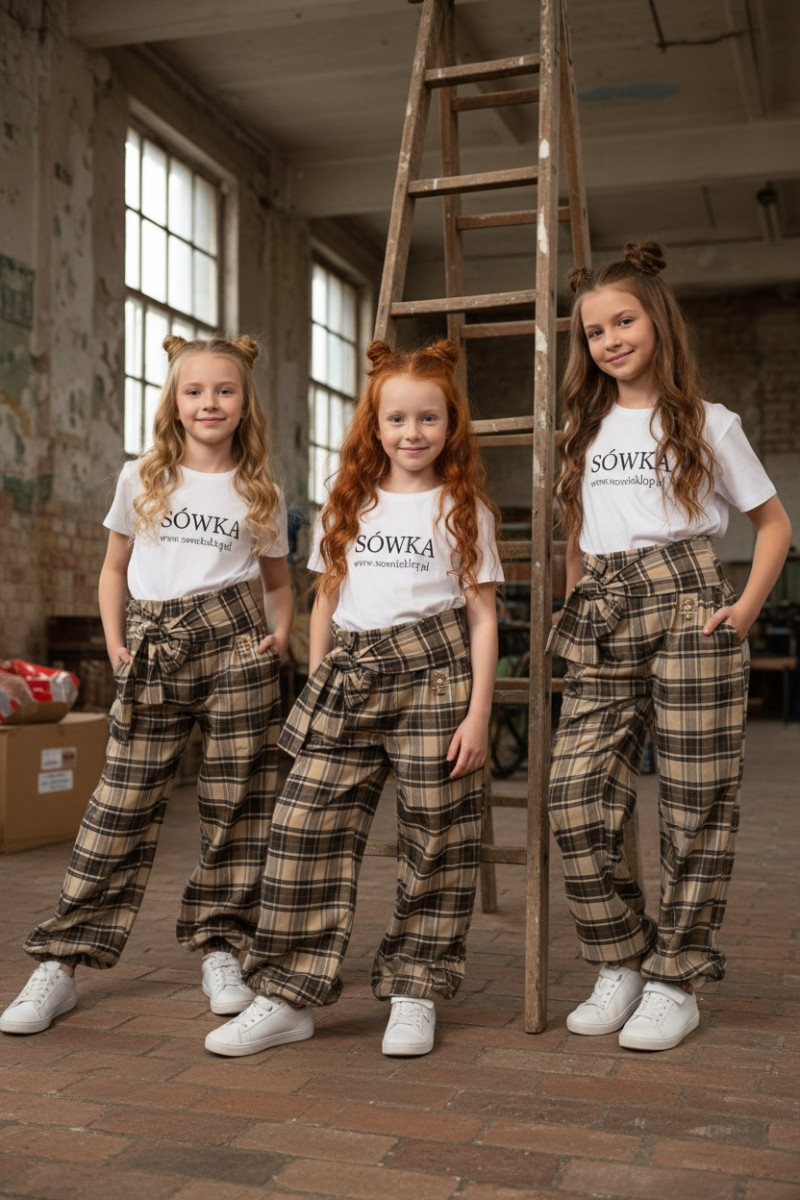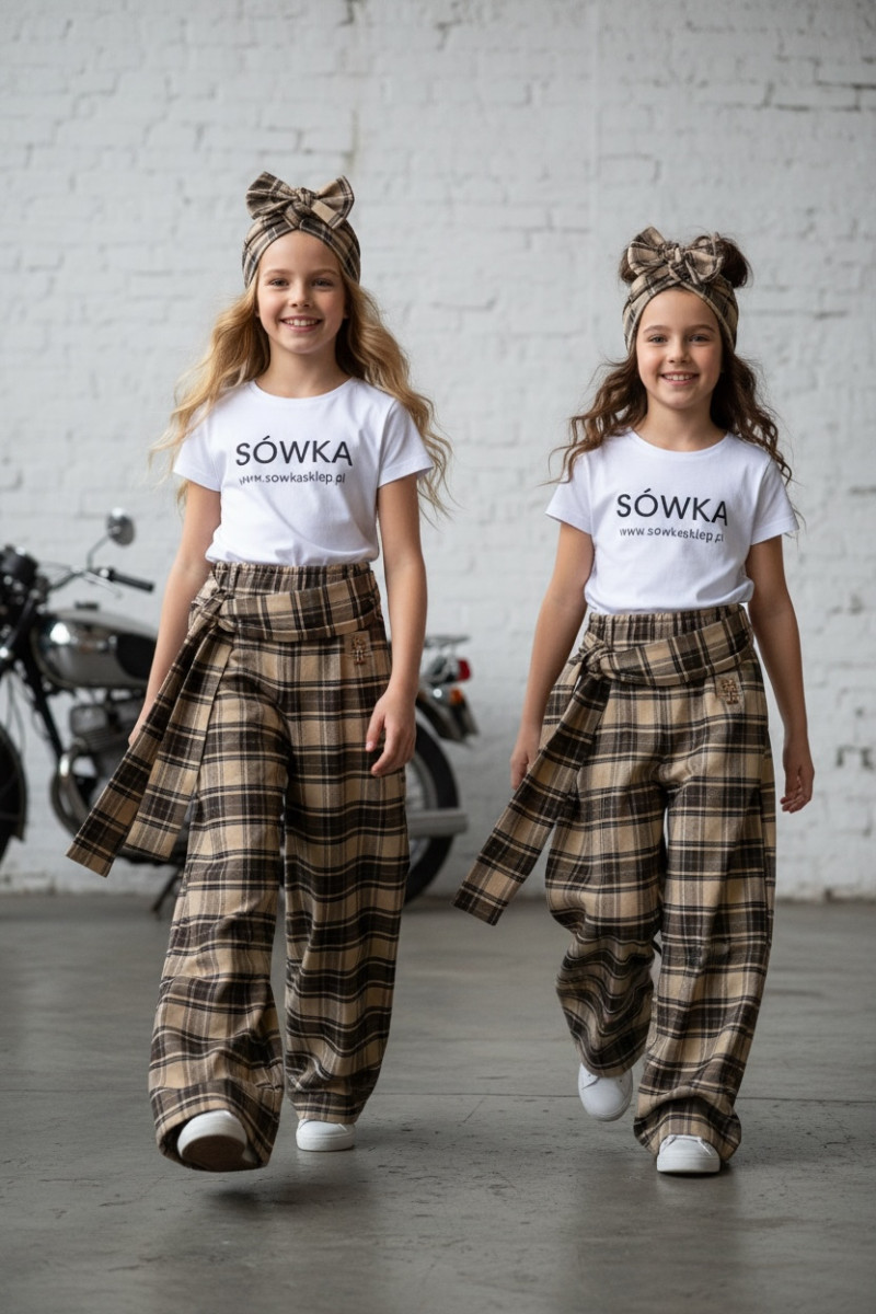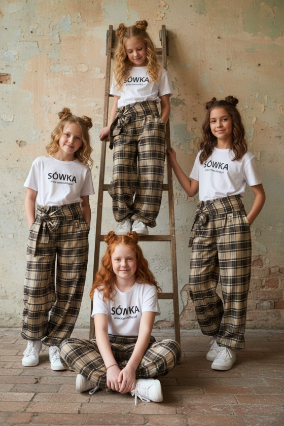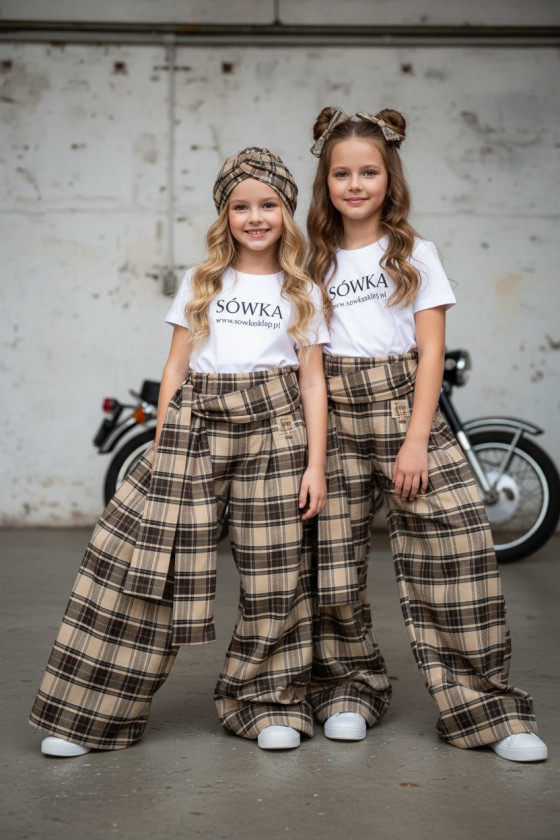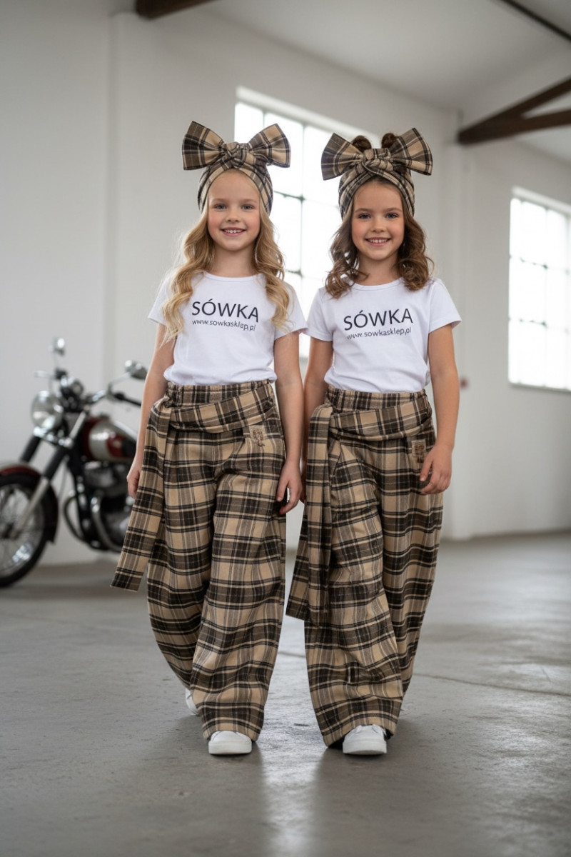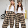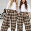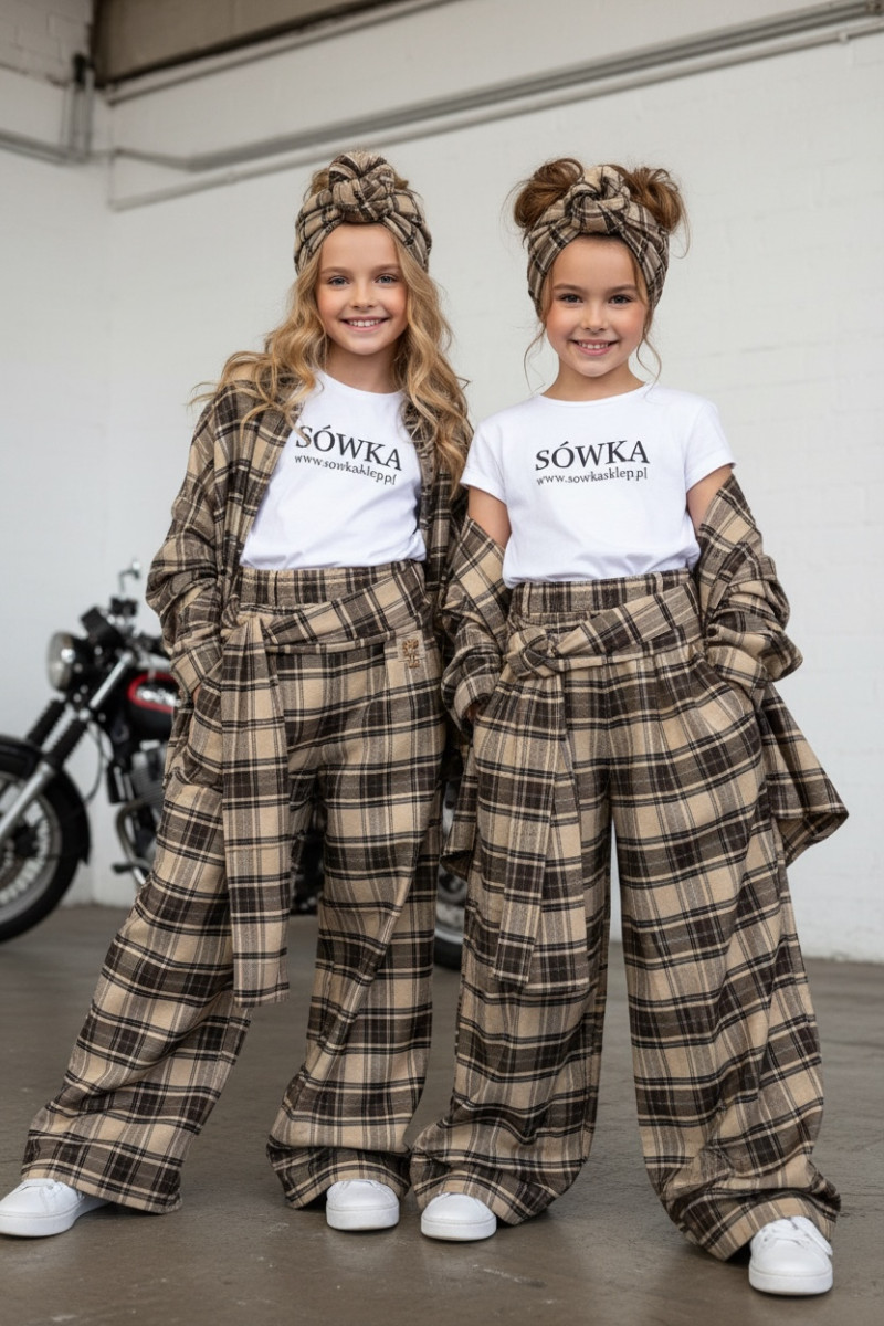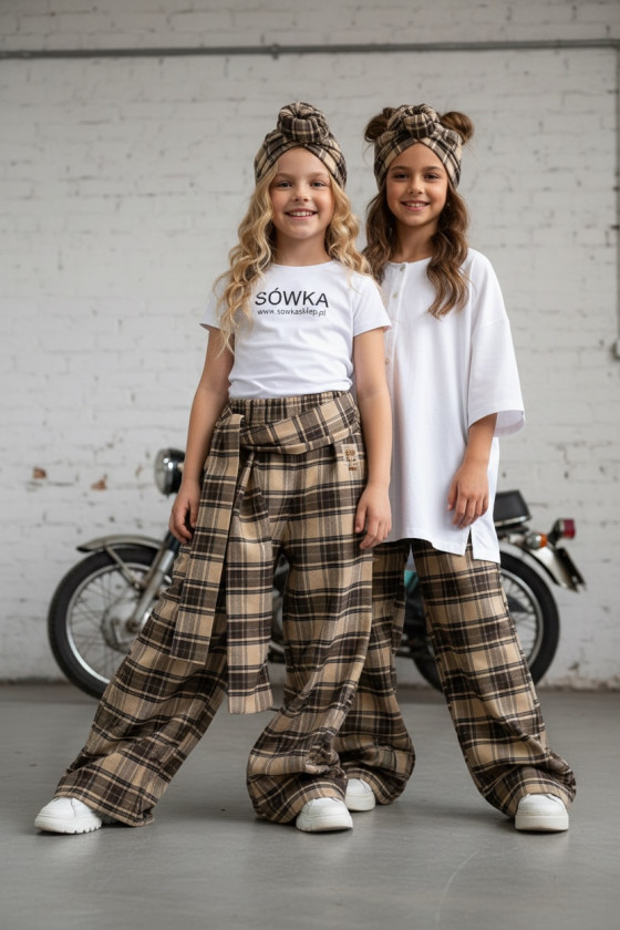 Spodnie w kratę oversize z regulacją stoperem w nogwce + gratis szeroki pasek