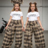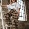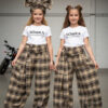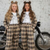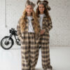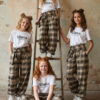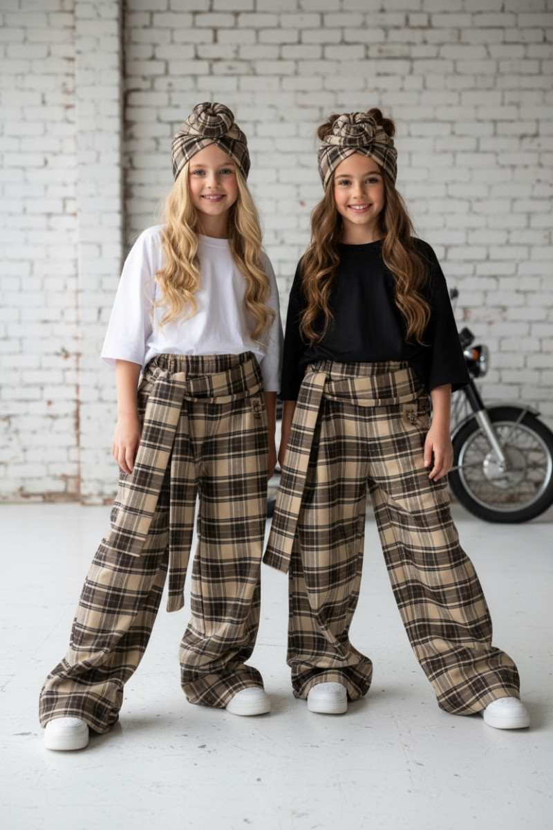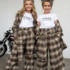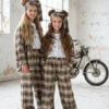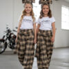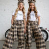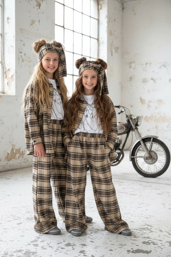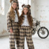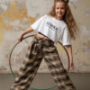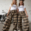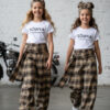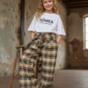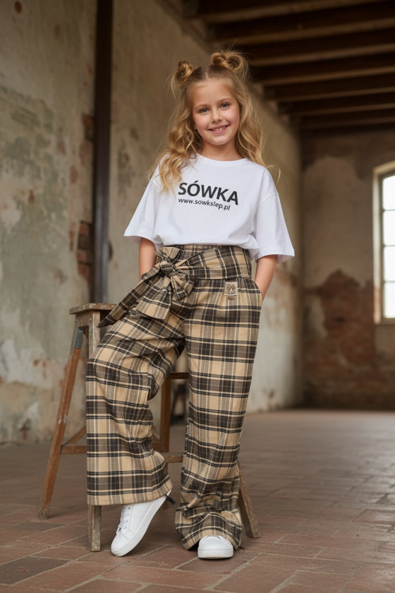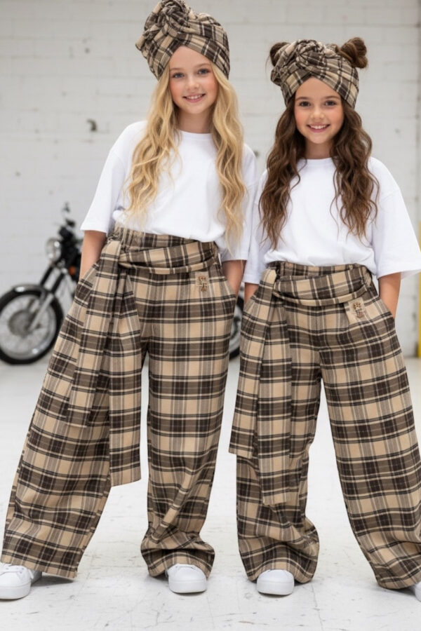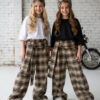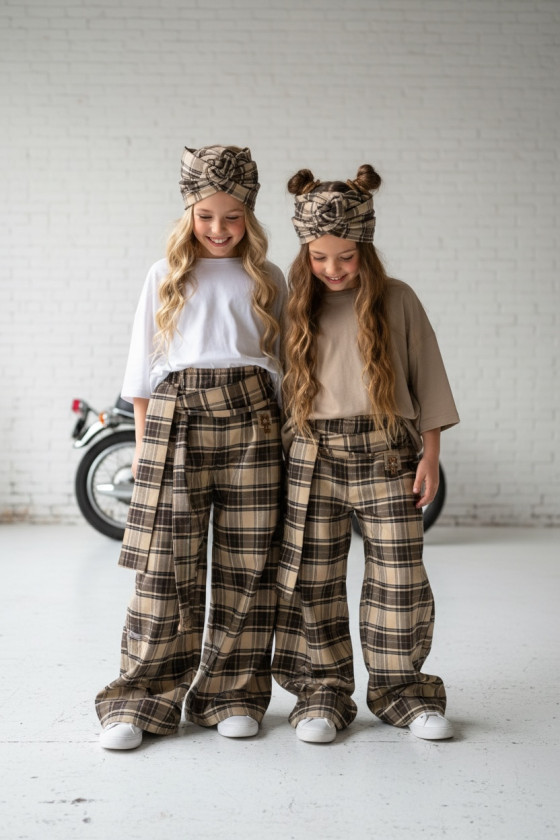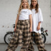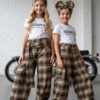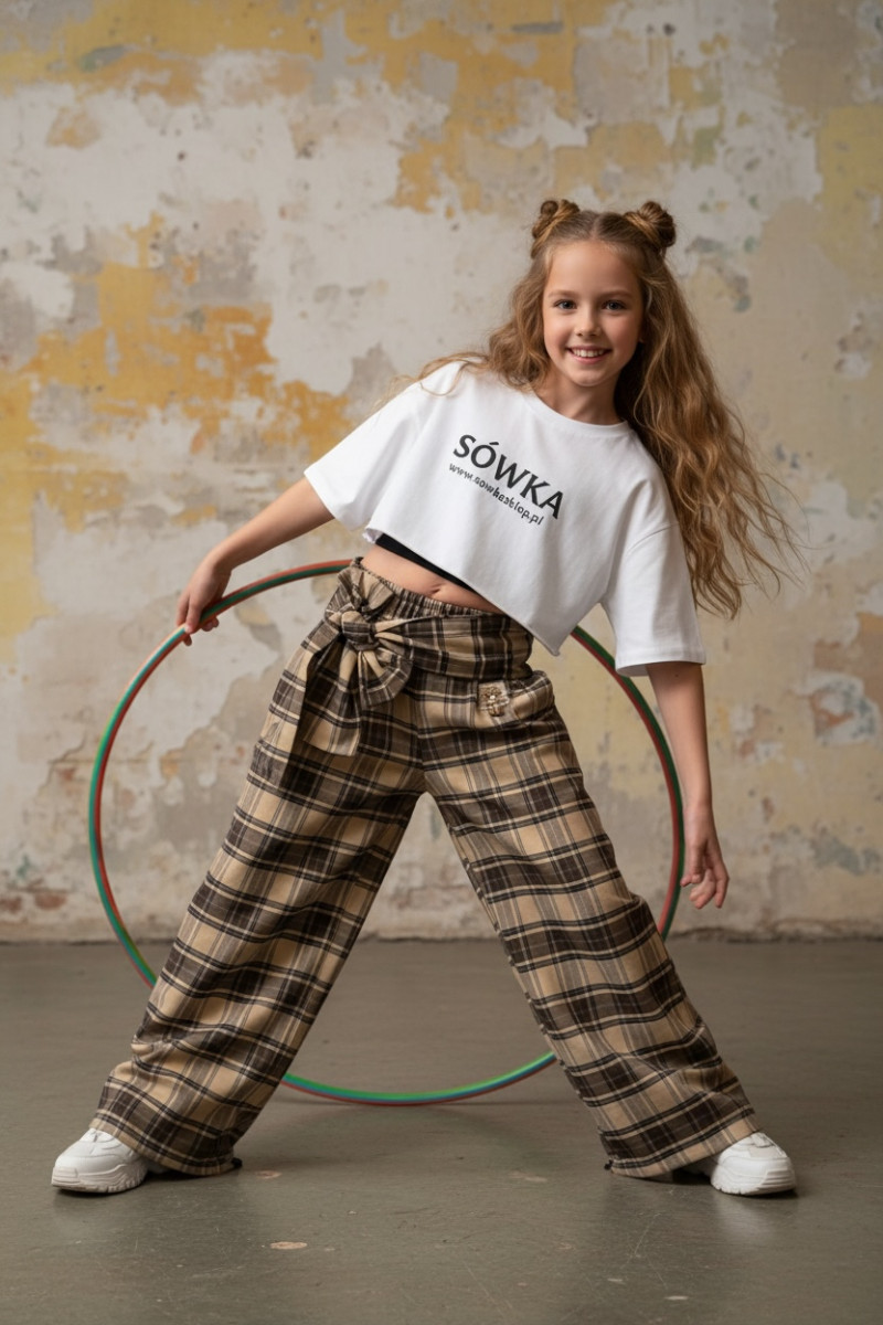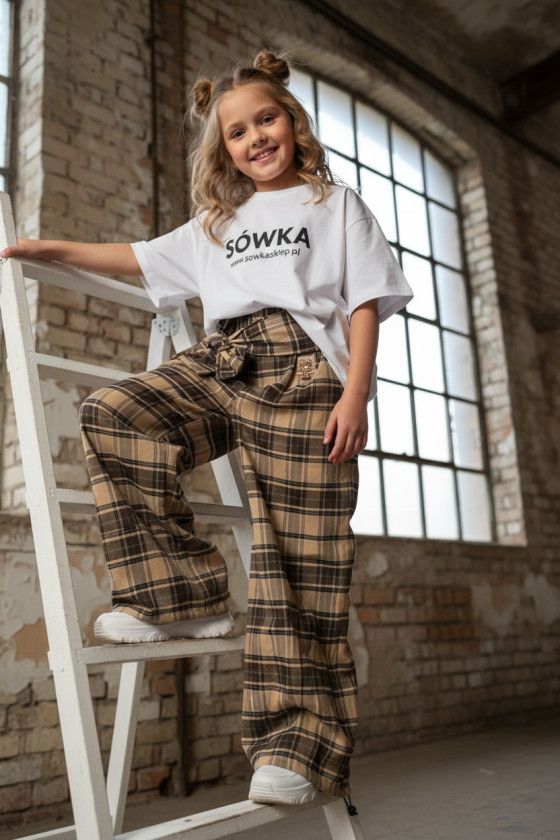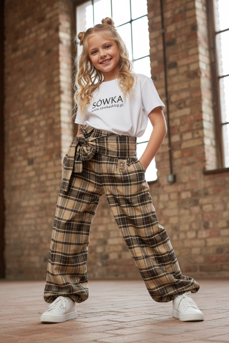 Spodnie w kratę oversize z regulacją stoperem w nogwce + gratis szeroki pasek