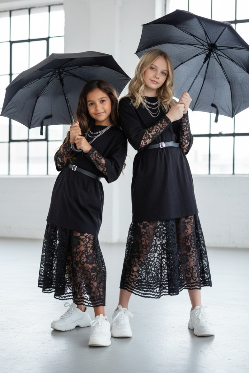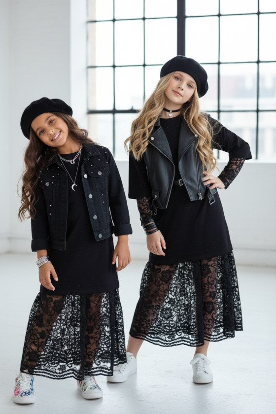Wyjątkowy, uniwersalny zestaw, który rośnie z garderobą Twojej córki i sprawdza się na każdą okazję – od rodzinnych uroczystości po codzienne wyjścia. W komplecie: