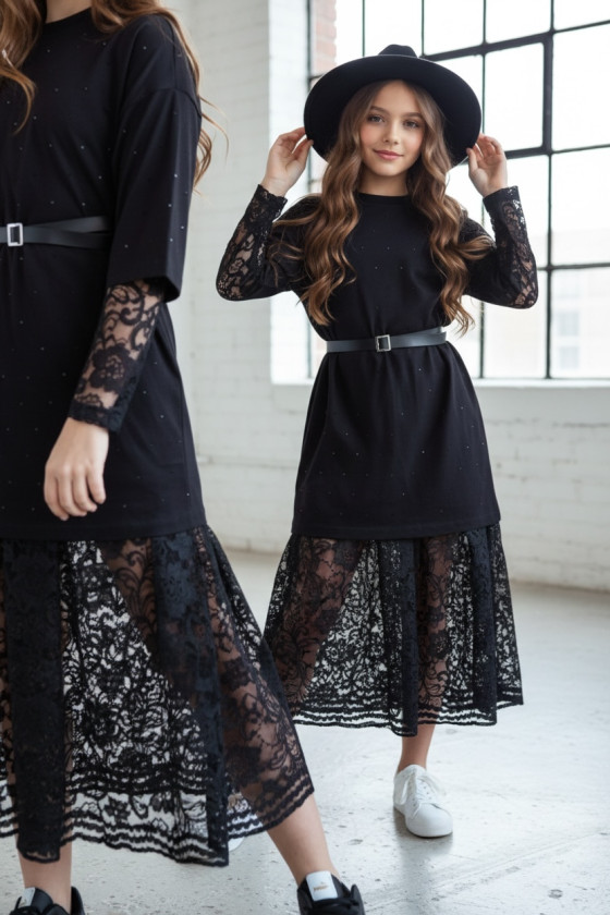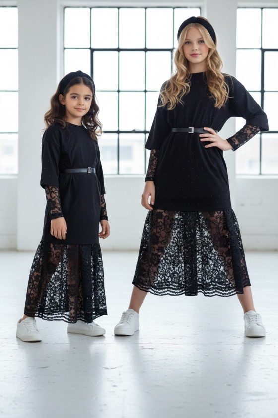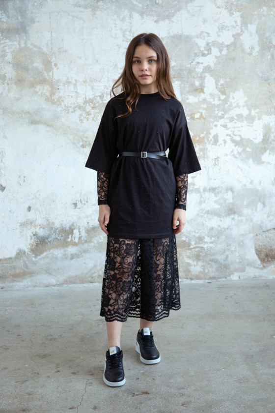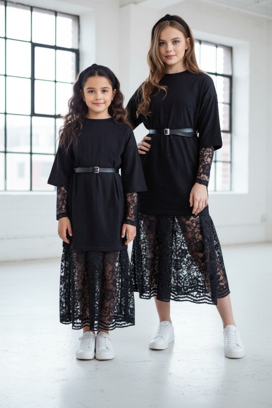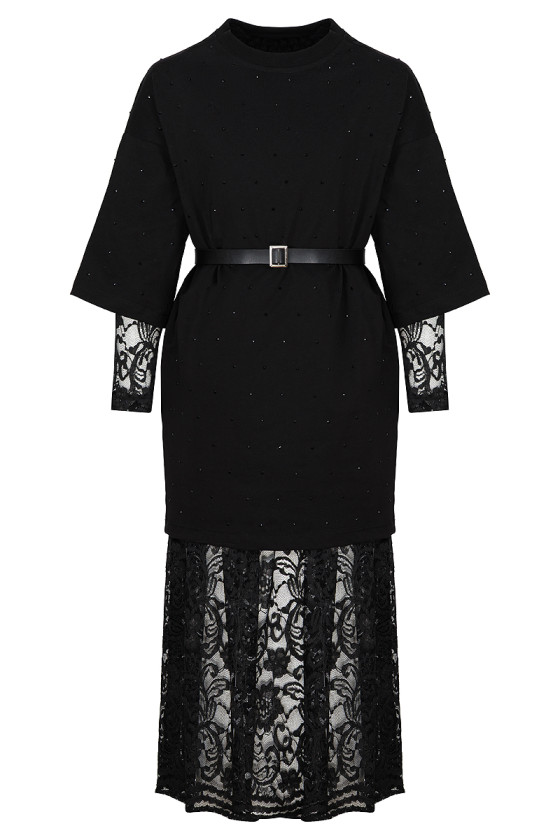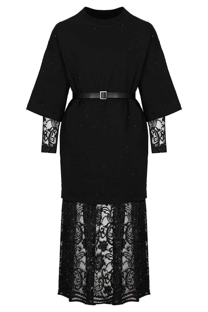 Sukienka 3 w 1 –sukienka z koronki+ bawełniana tunika + pasek
